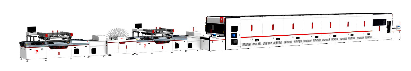 全自動特大板阻焊絲印烘干生產線解決方案,主要由特大尺寸pcb板,智能油墨樹脂塞孔機、自動阻焊絲網印刷機、阻焊預烤絲印烘干懸吊式隧道爐組成,實現3道工藝制程全自動生產,可節省人工6-8人,分鐘產能高達3~5片,節能省電智能高效。